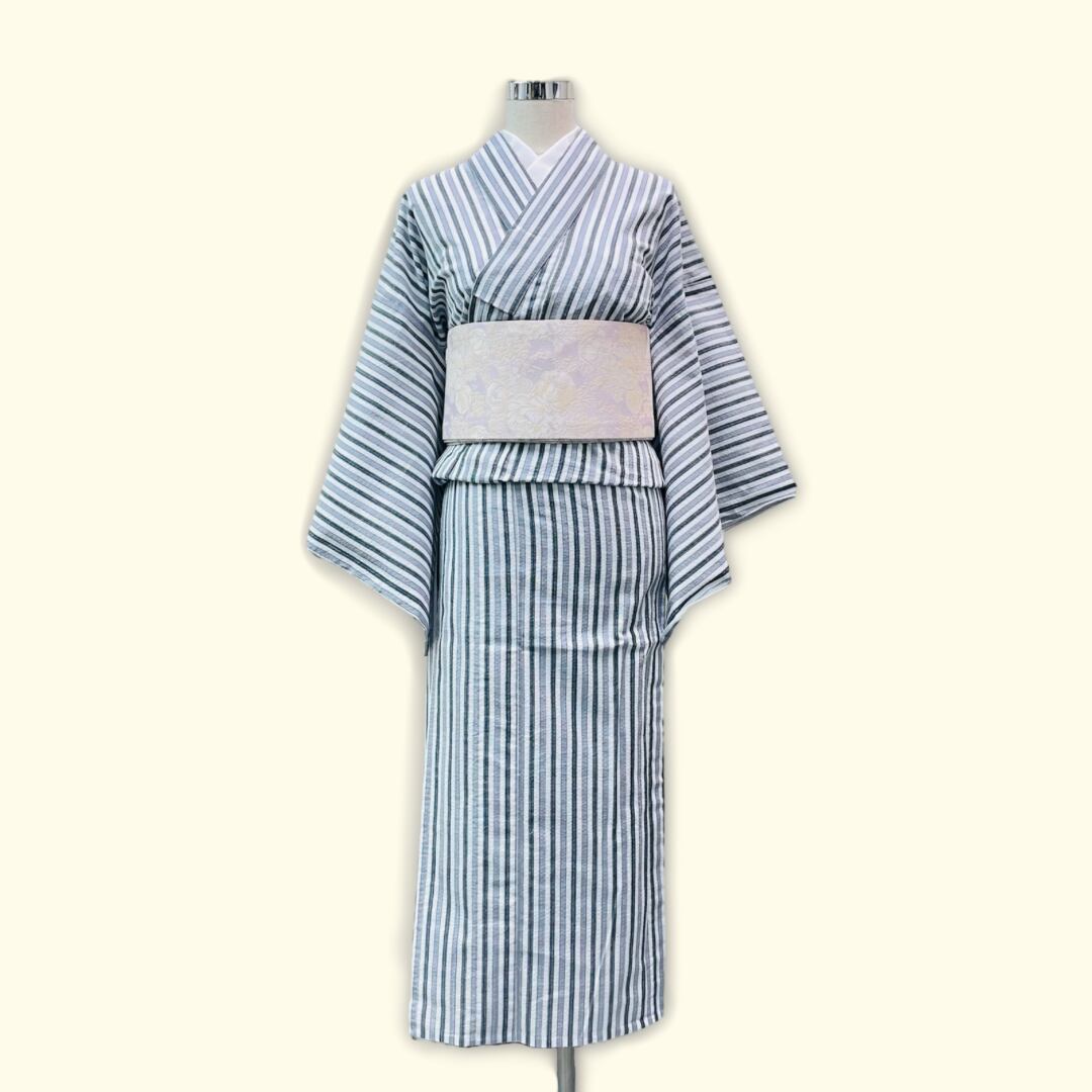 モノトーンなストライプ柄の着物です。